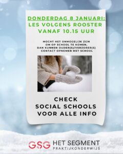 In verband met de gladheid op de weg hebben wij besloten de lessen en brancheopleidingen voor vandaag te laten vervallen. Dit betekent dat de leerlingen thuis m...